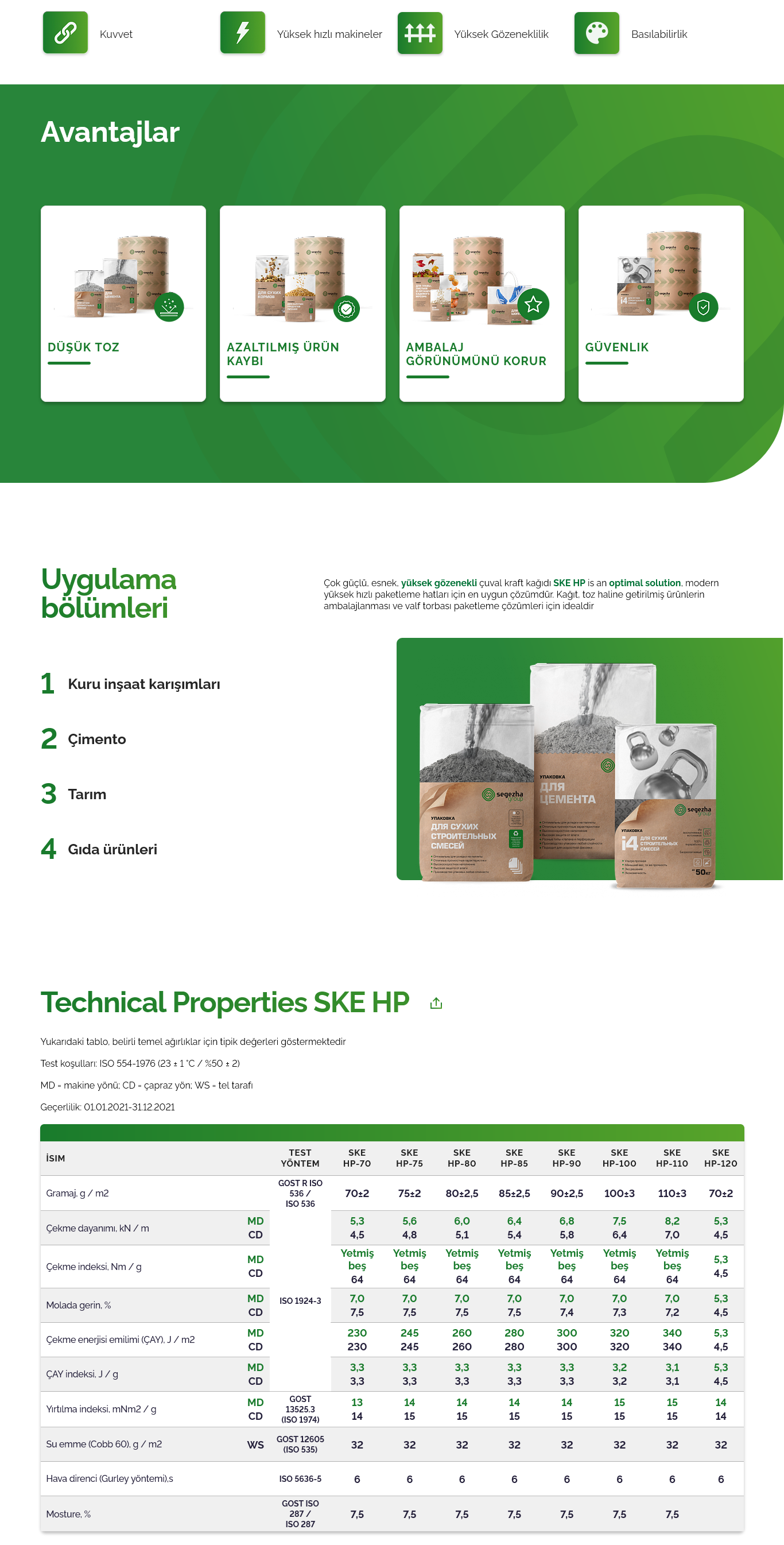 Çok dayanıklı, esnek, yüksek gözenekli kraft torba kağıdı SKE HP, modern yüksek hızlı paketleme hatları için en uygun çözümdür. Kağıt, toz ürünleri paketlemenin yanı sıra valfli torba paketleme çözümleri için idealdir.